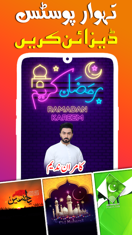 Nie masz umiejętności projektowania? nie martw się o to! Teraz aplikacja Urdu Tehwar Designer lub Urdu Tehwar Design Post Maker zawiera gotowe, gotowe do użycia szablony projektów, które można dostosować za pomocą kilku kliknięć. Korzystanie z niego i udostępnianie go w mediach społecznościowych jest naprawdę proste i łatwe dla każdego.