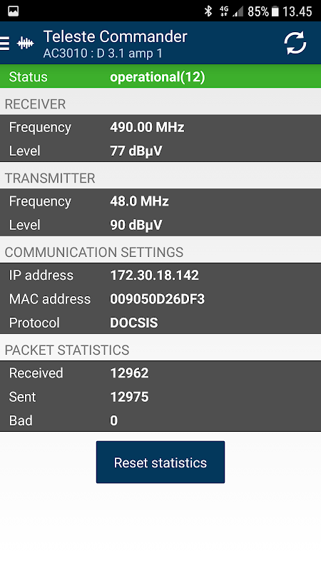 Teleste Commander to aplikacja terminala usługowego dla smartfonów i tabletów z systemem Android. Jest to odpowiedź na życzenia naszych klientów dotyczące poprawy użyteczności i lokalnego zarządzania za pośrednictwem osobistego urządzenia mobilnego. Teleste Commander obsługuje łączność bezprzewodową poprzez adapter AC6901 BT. Obsługiwane jest również połączenie kablem USB, ale zależy to od sprzętu urządzenia z systemem Android.