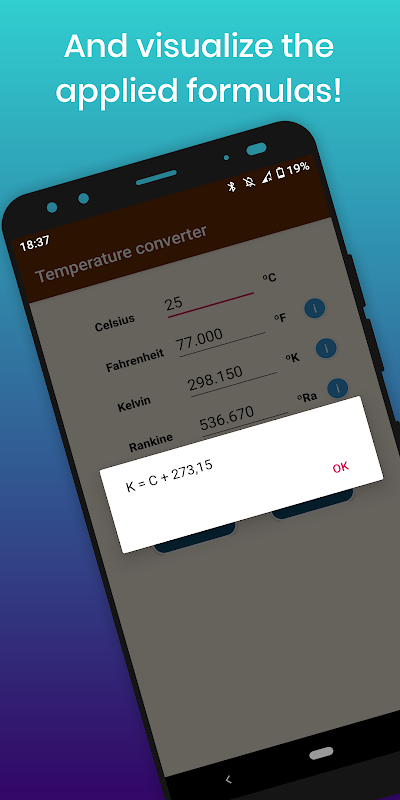 Czy potrzebujesz konwertera stopni Celsjusza lub Celsjusza? To jest Twoja aplikacja i oprócz tego, że jest konwerterem temperatury, zawiera formuły, dzięki którym możesz dowiedzieć się, jak została przeprowadzona konwersja temperatury.