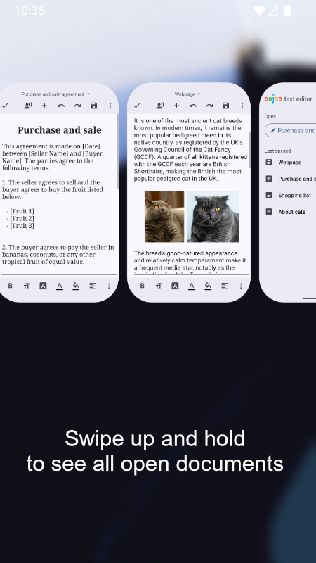 Oojao Text Editor to prosty i wydajny edytor plików do otwierania i zapisywania plików. Może otwierać wiele plików jednocześnie, ponieważ obsługuje edycję 2 dokumentów obok siebie na podzielonym ekranie.