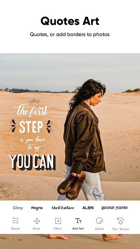Edytor tekstu zdjęć to aplikacja mobilna, która pozwala na dodanie tekstu do zdjęć. Każde zdjęcie można dostosować za pomocą ulubionych cytatów.
