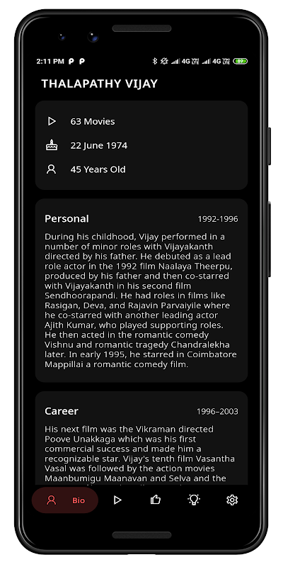 Ta aplikacja dostarcza informacji o Illayathalapathy Vijay i jego filmach.