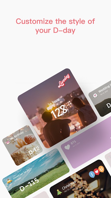 Odliczanie dni / Liczba dni / Miesiące / Tygodnie / DDMMYY / Powtórzenie miesięczne / Powtórzenie roczne / Powtórzenie cotygodniowe / Miłość / Urodziny / Egzamin / Dieta / Boże Narodzenie / Zakaz palenia / Wycieczka