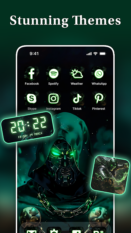 Zastosuj kompleksową metamorfozę ekranu głównego jednym dotknięciem. Każdy motyw zawiera pasującą tapetę, widżety i zmieniacz ikon aplikacji, zaprojektowane tak, aby idealnie do siebie pasowały. Od pastelowych i kawaii po minimalistyczne czarno-białe, neonowe cyber, świąteczne, artystyczne, wiosenne i jasne motywy – znajdziesz motyw na każdy nastrój.