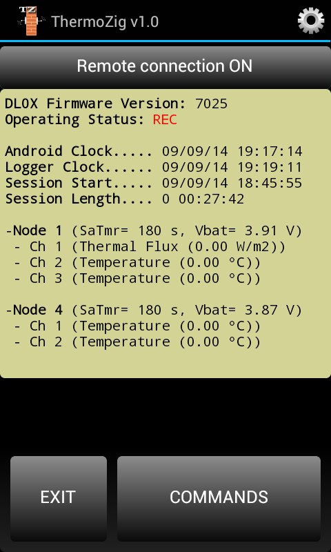 Aplikacja umożliwia podłączenie do systemu Thermozig (bezprzewodowy licznik ciepła) poprzez łącze Bluetooth i udostępnia następujące funkcje: