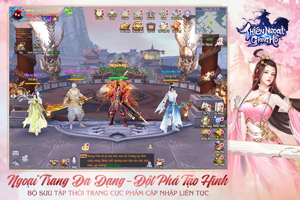 Atrakcyjność Thien Ngoai Giang Ho pochodzi ze starych doświadczeń, ale jest wydestylowana z kwintesencji rozległego świata szermierki. Niezależnie od tego, czy jesteś gościem, który kocha zacięte bitwy PK, ogniste pola bitew, czy po prostu wędrowcem, który uwielbia podróżować i cieszyć się życiem, możesz wyrobić sobie markę i godną pozycję w świecie szermierki.