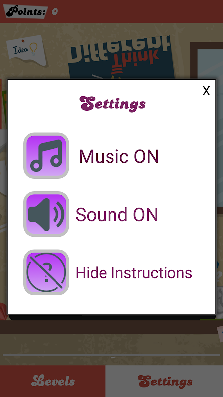 Think Different is Puzzle games. It is very challenging game since it's provide different question and trick. the game provide ten levels and if you pass them you really have a great mind and logic