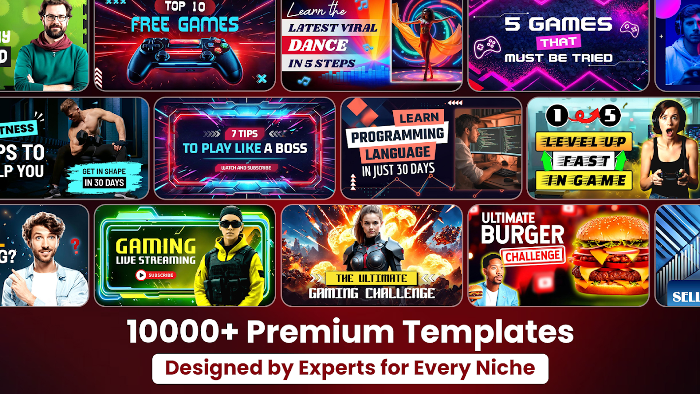Wybieraj spośród profesjonalnie zaprojektowanych szablonów miniatur dostosowanych do różnych kategorii: