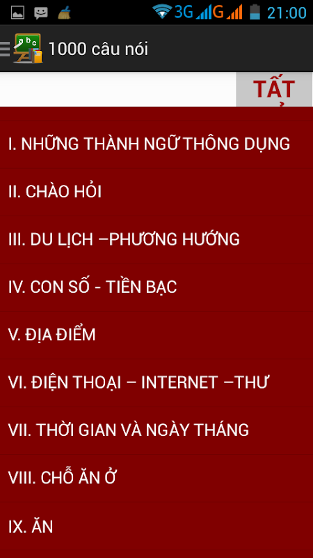 App gồn danh sách 3000 từ và 1000 câu nói tiếng anh thông dụng nhất.