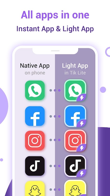 Natychmiastowa aplikacja i lekka aplikacja dla WhatsApp, Tiktok, Facebook itp., Bez konieczności instalacji.
