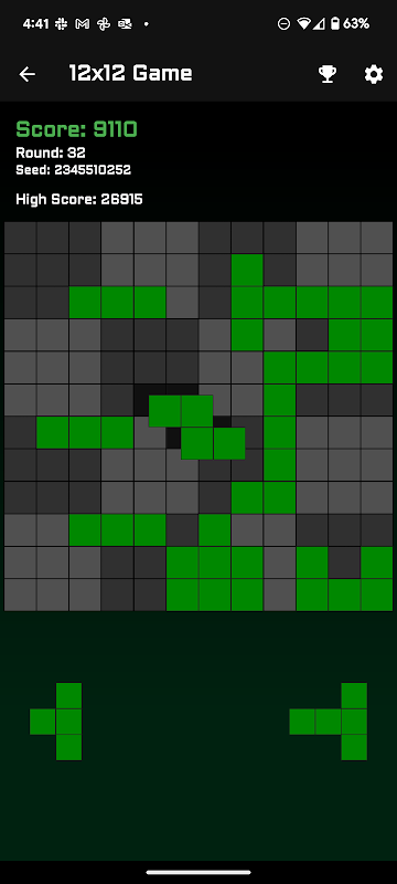 Przeciągnij różne kształty oparte na kafelkach na siatkę. Połącz rzędy, kolumny lub siatki, aby zdobyć punkty! Obsługuje tryby gry 6x6, 9x9 i 12x12. Możesz nawet powtórzyć swoje zestawy gier z wysokim wynikiem, jeśli RNG Cię zawstydzi!