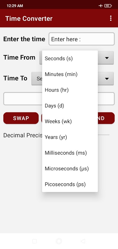Converts seconds, minutes, hours, days, weeks, years, & more to any of the units.