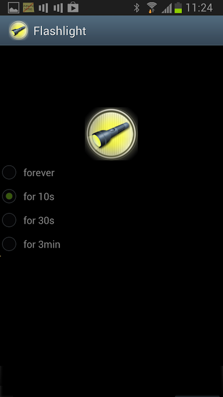 This simple app will turn your device into an easy timed flashlight. You don't have to worry about turning it off - you can set it to automatically shut itself off after 10 seconds, 30 seconds or 3 minutes.