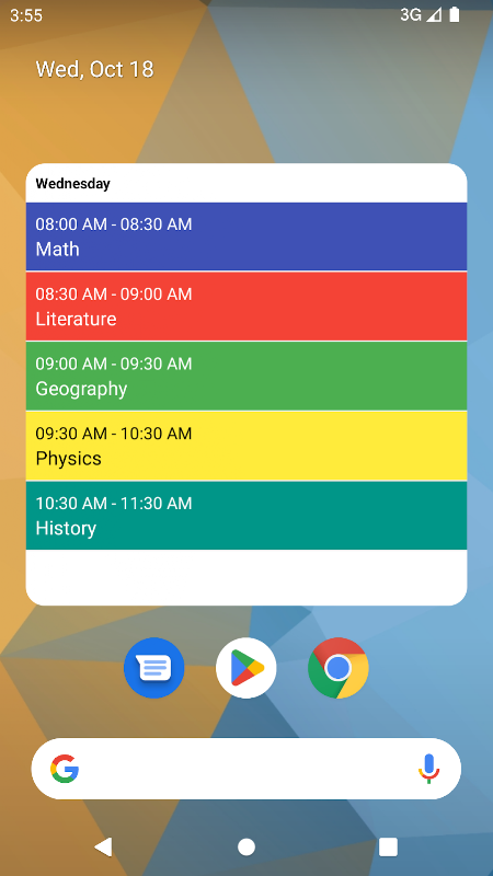 Chrono Table to prosta w użyciu, intuicyjna aplikacja do zarządzania szkołą, firmą, pracą lub innymi tygodniowymi zajęciami. Aplikacja została zaprojektowana tak, aby była łatwa w użyciu i nie jest przepełniona mnóstwem pól, które należy wypełnić. Wystarczy wpisać nazwę wydarzenia, wybrać zakres czasowy i zapisać. Następnie możesz po prostu przesunąć palcem w lewo lub w prawo, aby zobaczyć, co nadchodzi w Twoim harmonogramie. Możesz używać aplikacji jako planu zajęć i jest idealnym towarzyszem w szkole, na studiach lub na uniwersytecie. Żadna inna aplikacja do planowania lekcji nie była tak łatwa w użyciu. Ta aplikacja nie wymaga tworzenia konta ani połączenia z Internetem, jest całkowicie offline.