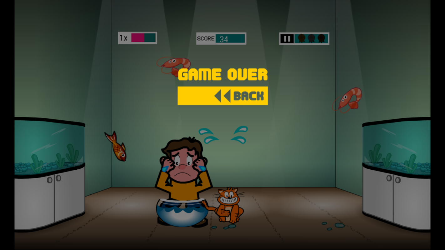 Save the fishes and shrimps from the mischievous cat! Be careful not to get the octopus land on your head! Don't forget to collect starfishes when the big whale come flying by!