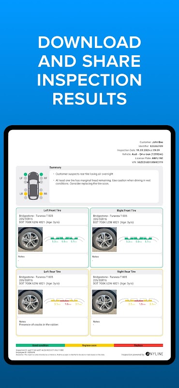 Dzięki przechwytywaniu danych opartemu na sztucznej inteligencji, dokładnym pomiarom bieżnika i raportowaniu w czasie rzeczywistym możesz przeprowadzić kompleksową kontrolę opon w czasie krótszym niż 90 sekund — bez konieczności stosowania drogiego sprzętu.