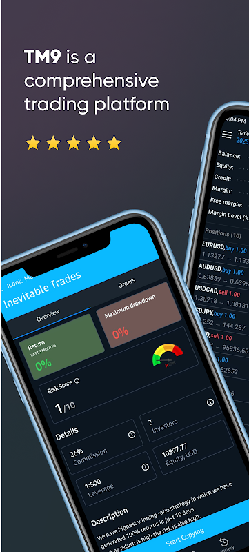 Bądź na bieżąco dzięki naszej funkcji kopiowania transakcji, śledząc najlepszych traderów i strategie optymalizacji wyników. Zagłęb się w analizę rynku za pomocą intuicyjnych narzędzi, ustaw niestandardowe alerty i śledź swoje wyniki za pomocą szczegółowych raportów o rozwoju konta. Niezależnie od tego, czy jesteś doświadczonym traderem, czy dopiero zaczynasz, TM9 zapewnia przyjazny dla użytkownika interfejs, spersonalizowane spostrzeżenia i oparte na społeczności podejście do sukcesu w handlu.