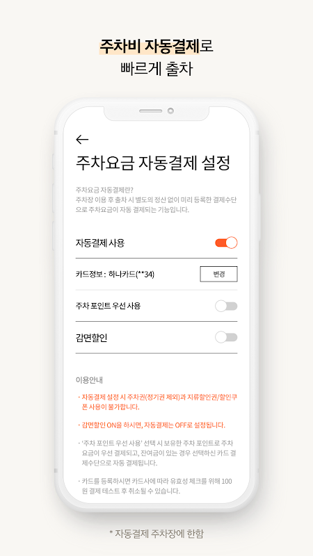 앱 사전 결제와 자동 결제로 바로 출차하세요.
