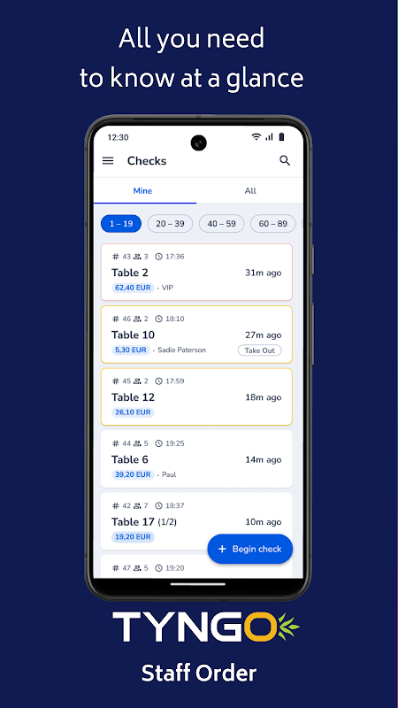 Aplikacja mobilna TYNGO Staff Order dla Oracle MICROS Simphony POS zapewnia Twoim gościom najlepszą możliwą obsługę. Dzięki tej aplikacji Twoi kelnerzy mogą zredukować wieloetapowy proces składania zamówienia do jednego – stworzenia zamówienia. Twoja obsługa stanie się szybsza, a Twoi klienci będą szczęśliwsi. Po utworzeniu zamówienia w aplikacji jest ono natychmiast wysyłane do kuchni. Funkcja offline umożliwia przeglądanie otwartych czeków, tworzenie nowych czeków i składanie nowych zamówień, które są przetwarzane w Simphony natychmiast po ponownym nawiązaniu połączenia z serwerem.