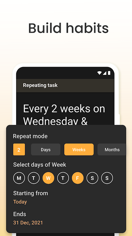Możesz łatwo dodać pojedynczy lub powtarzający się alarm do zadań do wykonania, z drzemką i niestandardowym dzwonkiem, dzięki czemu nie przegapisz żadnego z nich.