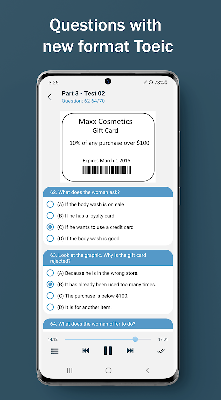 Najlepsza aplikacja do testu Toeic, Toeic New Format, słuchania, czytania, Toeic offline