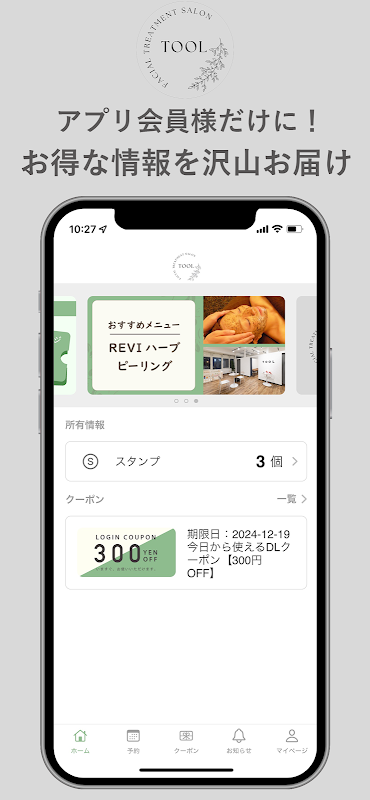 Za pośrednictwem aplikacji możesz otrzymywać najnowsze informacje i oferty dotyczące TOOL. W każdej chwili możesz także sprawdzić menu, wybrany przedział czasowy i dokonać rezerwacji ze swojego smartfona. Instalując aplikację, możesz wygodniej korzystać z narzędzia TOOL.