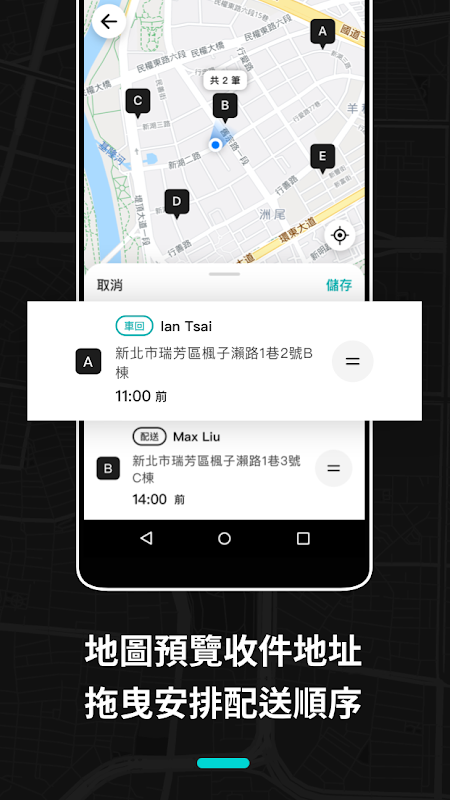 -Podejrzyj adres odbiorcy na mapie, przeciągnij, aby ustawić kolejność dostawy