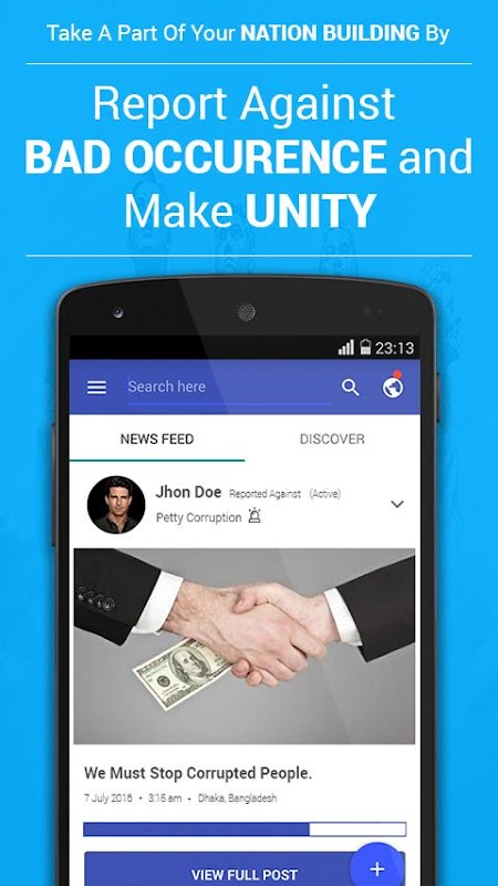This platform has been made only for creating social awareness and unity among the peoples of every country against all type of occurrence in their society. Also people can Share the occurrence and Support / Nonsupport any type of Cause or Campaign.