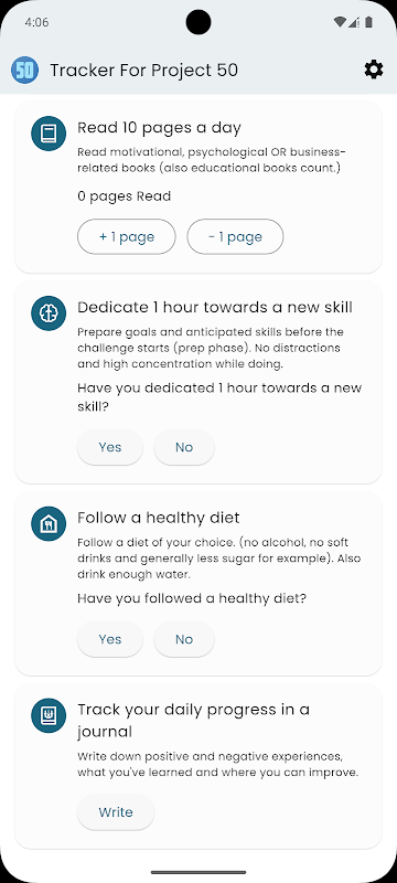 ✅ Codzienne śledzenie nawyków – zapisuj swoje postępy w zakresie wszystkich zasad projektu 50-dniowego wyzwania w jednym miejscu.