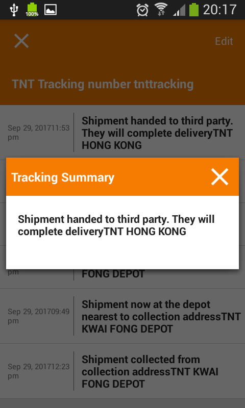 - Tap "Track" button to getting data from tnt Tracking Services When the result has return you can view you status's shipments, if your request is legal, your Tracking Tool For tnt ID will be saved to use in next time