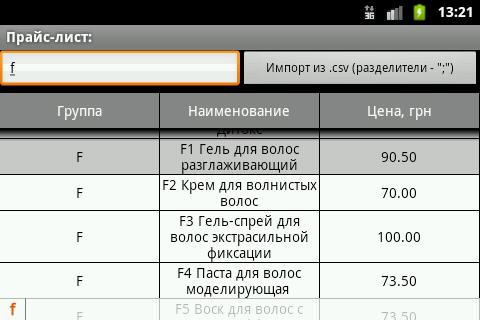 * Import *.csv price-list (3-column table: group of the item, item description and price. For national font is to be UTF-8 encoded)