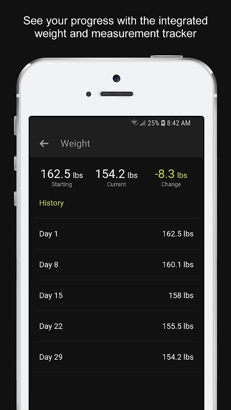 Przekształć w 20 minut dziennie! Czy jesteś gotowy, aby zmienić swoje ciało w zaledwie 20 minut dziennie? Transform Tracker eliminuje wszelkie domysły i ułatwia osiągnięcie sukcesu! Śledź swoje codzienne Transformatory i obserwuj swój postęp z tygodnia na tydzień. Planuj i rejestruj posiłki, aby uzyskać maksymalne wyniki. Zobacz wyniki odchudzania w całym programie. Nigdy więcej papierowych planistów, bez frustracji, bez wymówek!