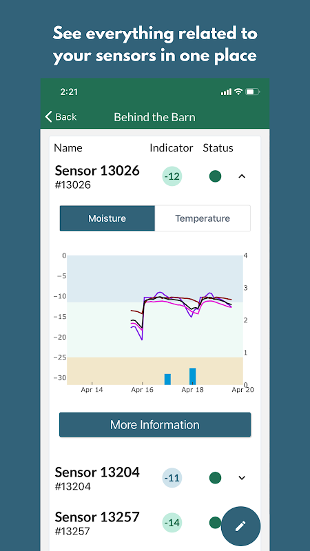 Get moisture, temperature, & salinity graphs in fewer taps.