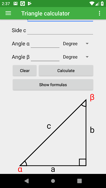 Ta aplikacja oferuje łatwy sposób obliczyć boki i kąty trójkąta prostokątnego, wprowadzając dwie wartości. Aplikacja ma świetny design i możliwość przełączania między stopniach i radianach, aby przepływ pracy jak najbardziej skuteczny.
