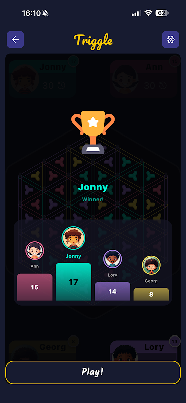 Triggle to gra strategiczna dla 2 do 4 graczy. Każdy gra sam. Można grać ze znajomymi, z botami lub w obie te formy.