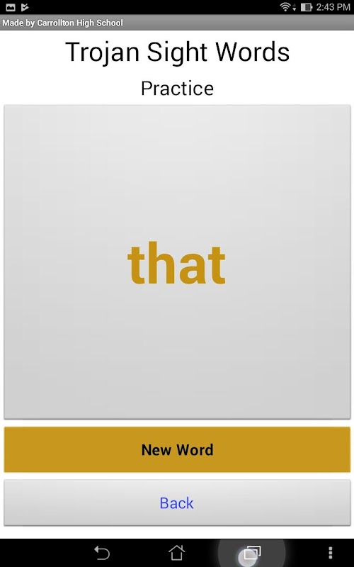 The Practice Mode shows each word from the list and when pressed will say the word.
