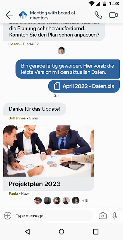 • Dynamiczne przesyłanie wiadomości: natychmiast łącz się ze współpracownikami, partnerami i klientami za pośrednictwem bezpiecznych czatów