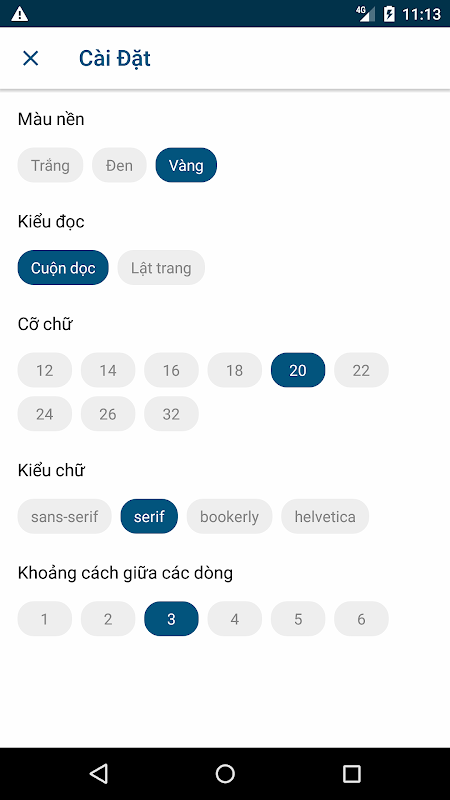 + Chế độ đọc ban đêm, nền vàng