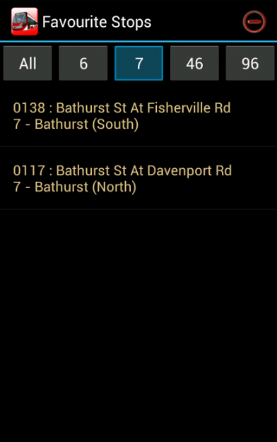 Users can set any stop name/number as favourite stop and subsequently retrieve timings on just one tap.