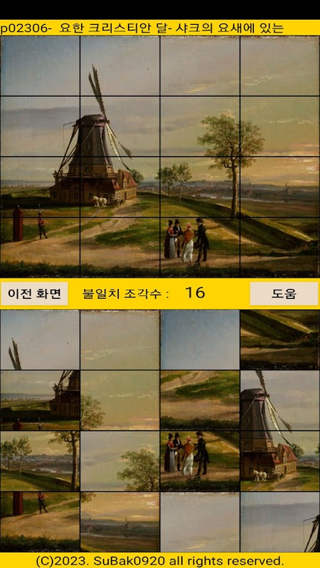 It is a puzzle game where you touch two places to exchange pictures and match them.
