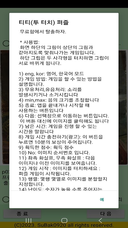 It is a puzzle game where you touch two places to exchange pictures and match them.