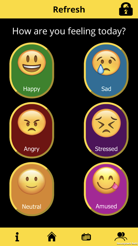 TU Refresh is a daily emotion check-in app. Enter the app once a day to record how you're feeling! The app will prompt you do perform a certain activity based on the emotion you chose. These activities are designed to either keep up your good moods or help improve your poor ones! Your daily recorded emotion will be logged in a color-coded calendar inside the app so that you can go back and reflect how your emotions have fluctuated over time.
