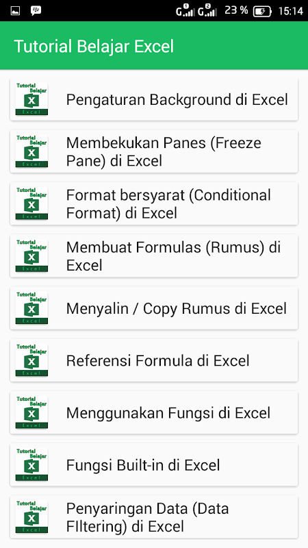 Jeśli szukasz samouczki do nauki arkusza kalkulacyjnego Excel z Indonezji, to należy natychmiast pobrać i zainstalować aplikację Tutorial nauki do programu Excel w telefonie komórkowym.