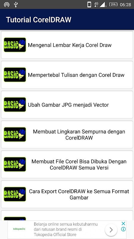 jika Anda mencari tutorial belajar Coreldraw dengan Bahasa Indonesia, panduan step by step lengkap dengan gambar, maka Anda perlu segera mendownload dan menginstall Aplikasi Tutorial CorelDRAW ini di perangkat mobile Anda.