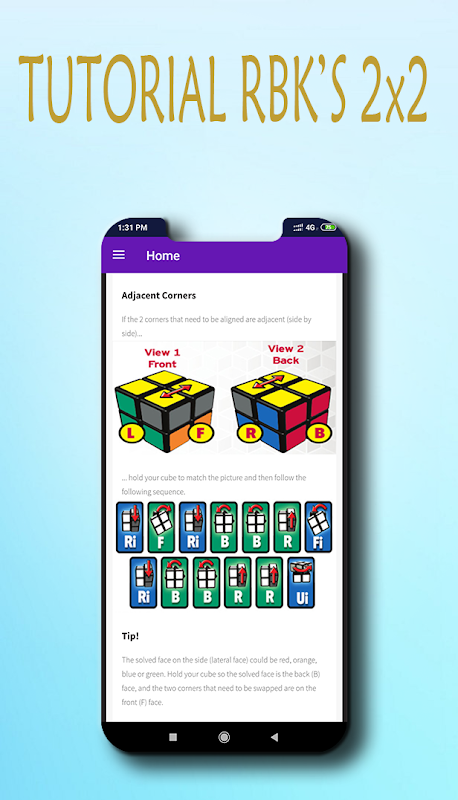 This application is a tutorial to solve the 2x2 cube problem, especially for beginners or if you just want to learn it.
