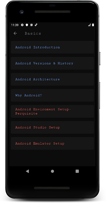 Ta aplikacja zapewnia wiedzę o android, android i wersje historii, jak zainstalować android studio, prawdziwych przykładów z kodami źródłowymi i wiele więcej.