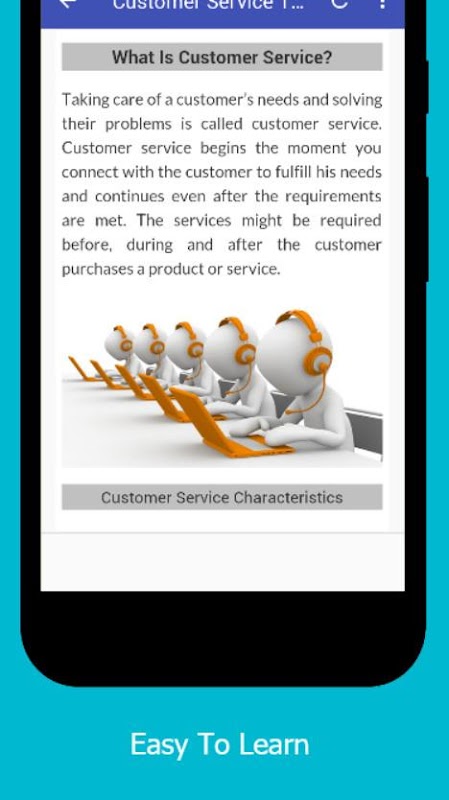 Tutorials for Customer Service Offline is a complete application for those of you who want to learn Customer Service easily and for free. There are dozens and even hundreds of Customer Service tutorials starting to base for beginners to advanced. All these tutorials you can read offline without the need to connect to the internet or mobile data.