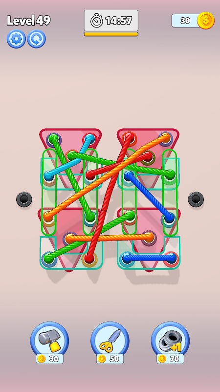 Rozwiązuj wyzwania: Ukończ każdy poziom, rozplątując wszystkie liny i idealnie je dopasowując.