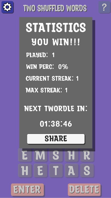 Two Shuffled Words is fun with friends and family so remember to share the game and see who can solve the 2 words first and get the highest streak.