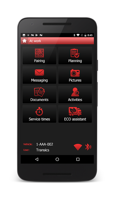 Po sparowaniu TX-FLEX z komputerem pokładowym Transics TX-SKY lub TX-GO, kierowca może używać TX-FLEX do śledzenia planowania, wykonywania określonych czynności poza kabiną i uczestniczenia w procesie komunikacji.